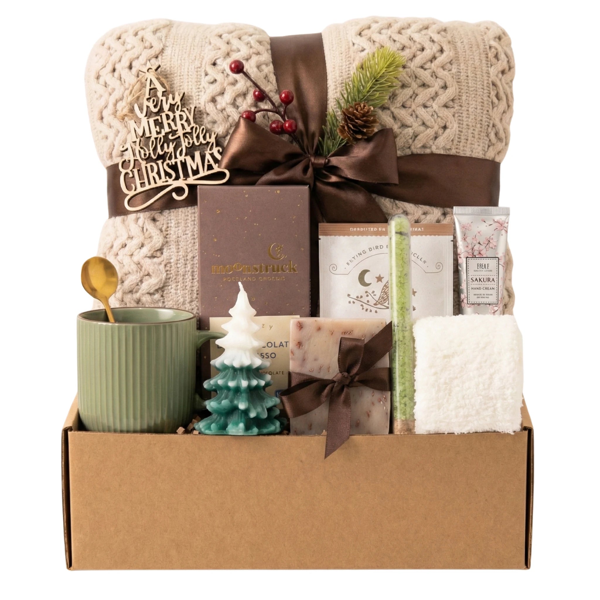 With its charming tree-shaped candle and "Holly Jolly" wooden ornament, this box captures the cozy spirit of the season. It’s a thoughtful way to say "Merry Christmas" with style and warmth.