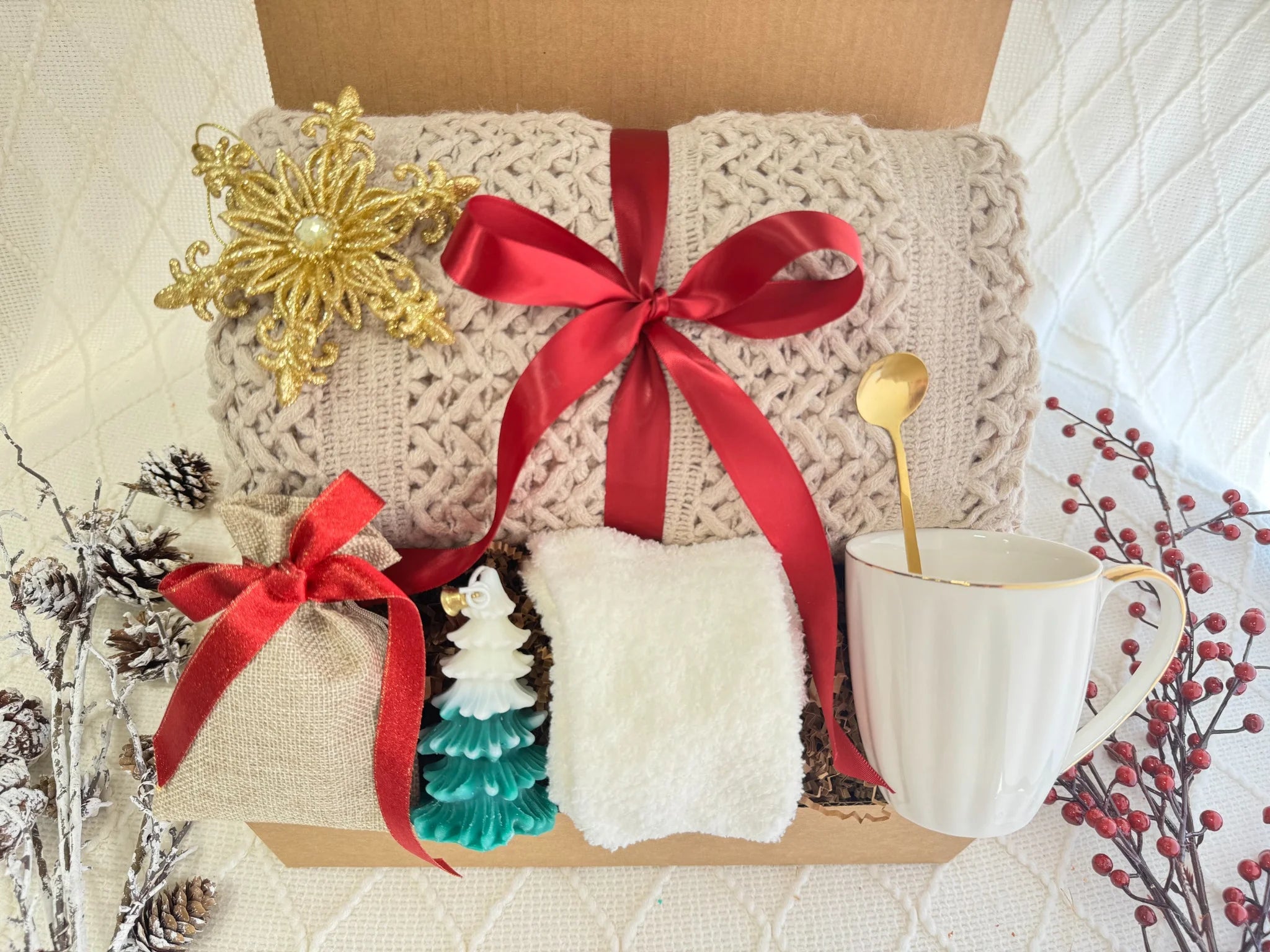 Experience the magic of a cozy Christmas with our I Have a Dream Gift Box. Featuring a soft beige knit blanket, sparkling gold snowflake ornament, and festive winter essentials, it's the perfect gift to inspire holiday joy.